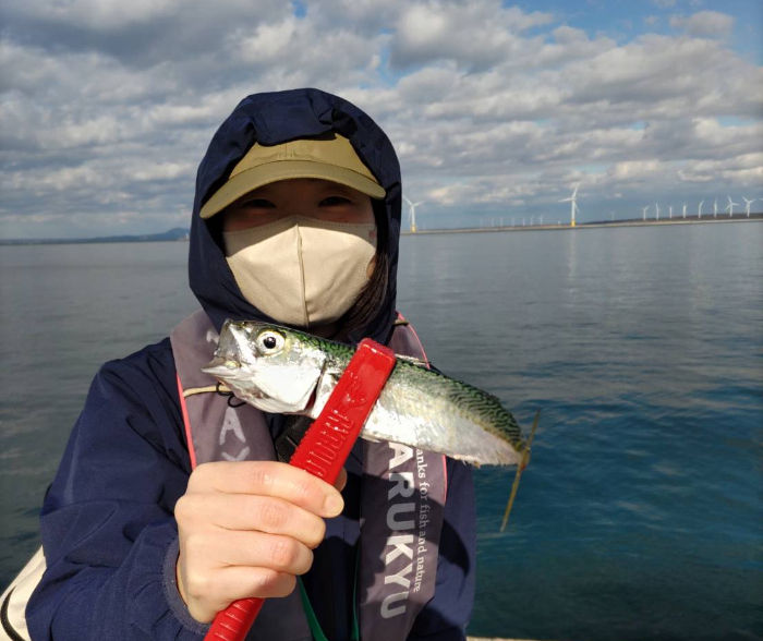 サバ20cm前後 300~500m男鹿側でポツポツ